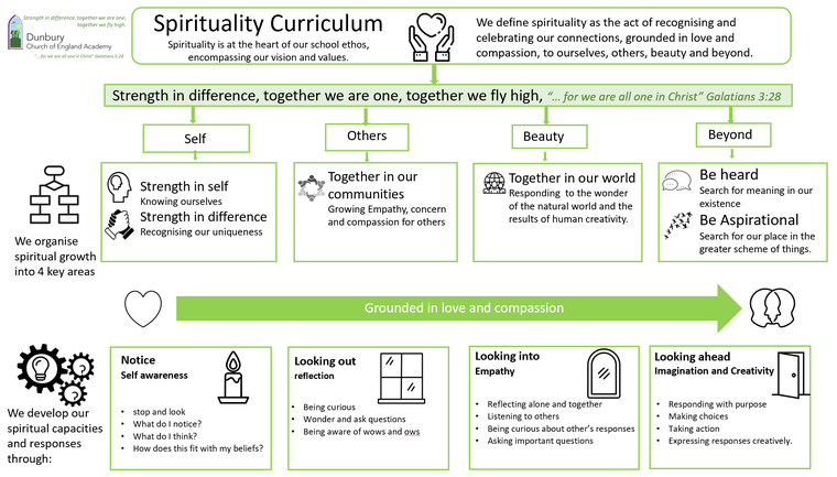 At Dunbury we have mapped the progression for spirituality development across the school through four key areas: spiritual capacities, experiences, response and understanding.