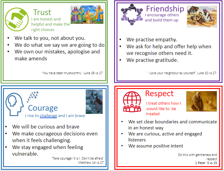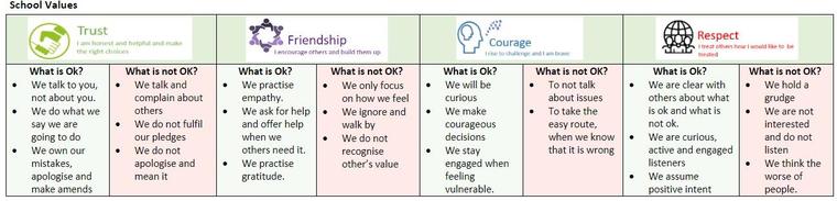We believe that teaching and demonstrating how we live our values helps children to learn how to behave well. When talking to children about the choices they have made, we use the language ‘ok’ and ‘not ok’ for the relevant value. This way, they can see if they have respected the value they believe in or whether they need to work harder towards being true to that value.